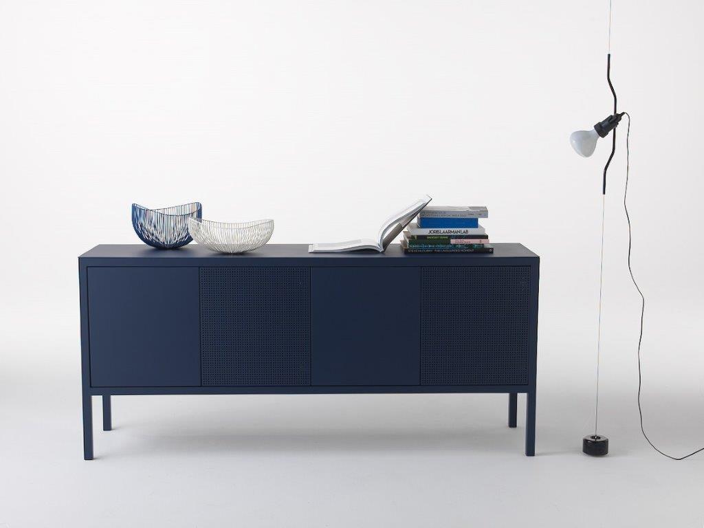 La collezione di madie e credenze Frame è contraddistinta da un design minimale nel quale il telaio in tubo quadro è sempre in vista. Il top, sottile pochi millimetri, è in metallo così come le due versioni di ante – piena e forata – che permettono diverse composizioni sulle varie modularità e che rendono la collezione adatta in qualsiasi contesto, insieme alla sorprendente scelta fra le 40 finiture Fantin.